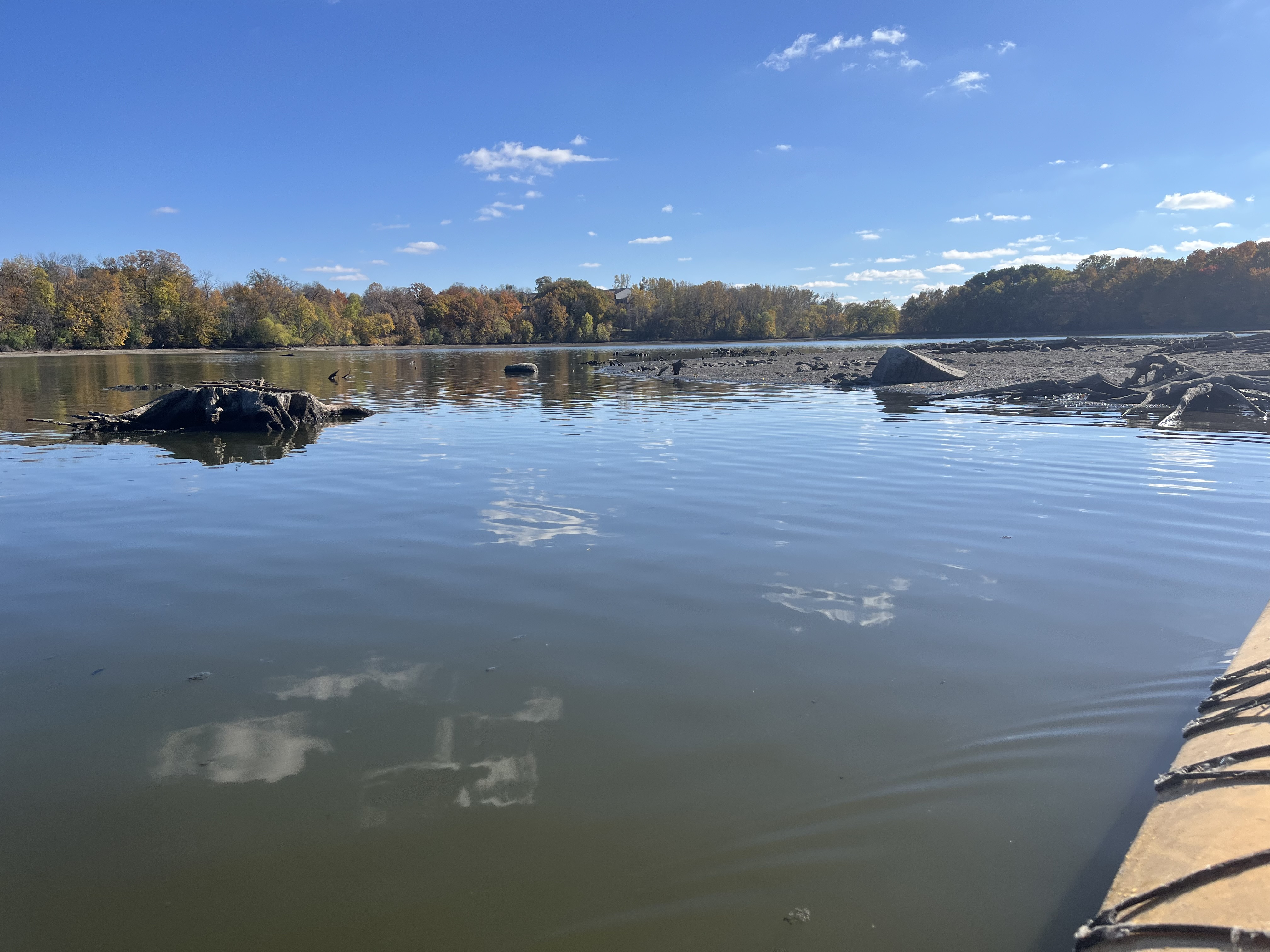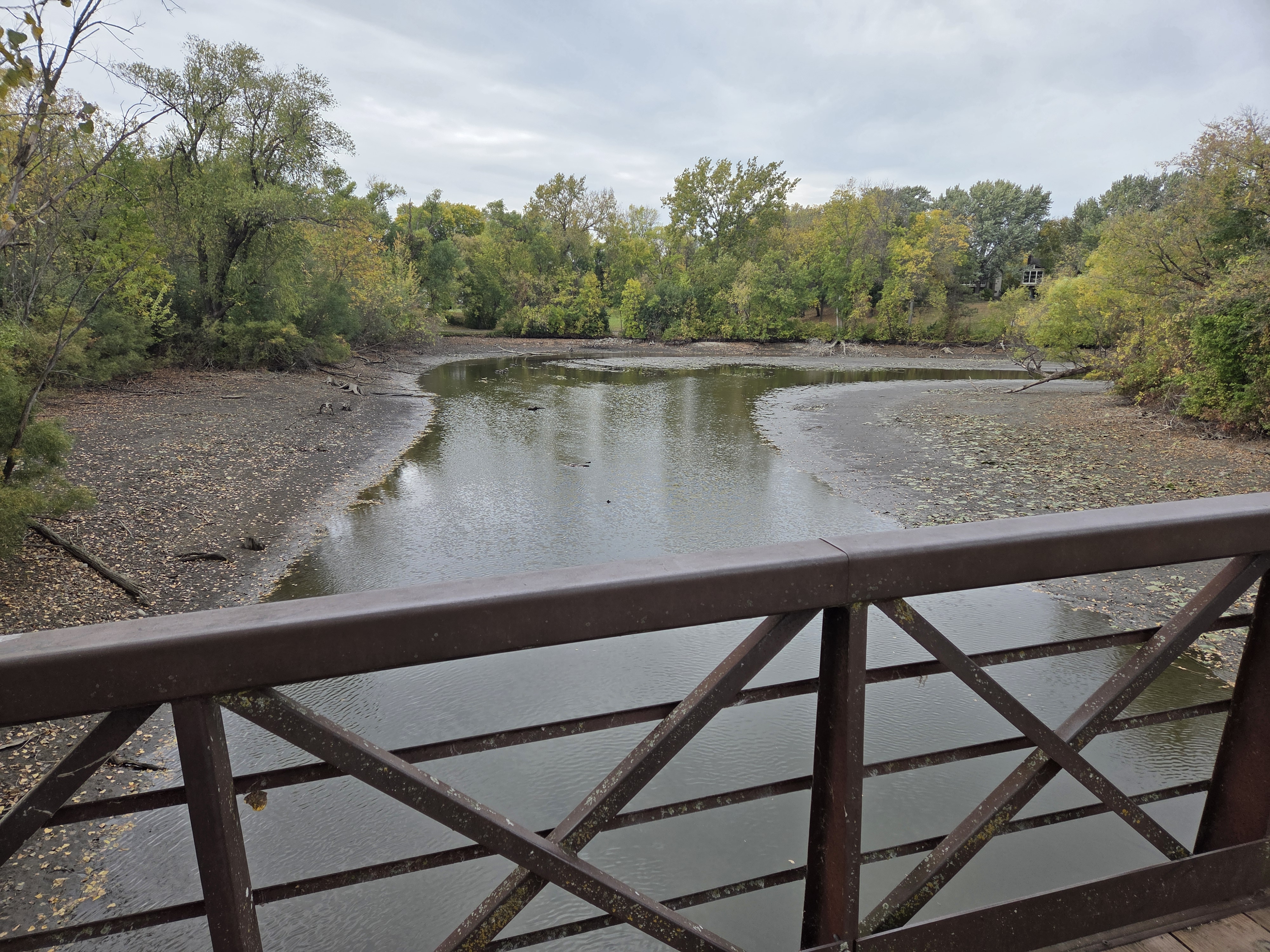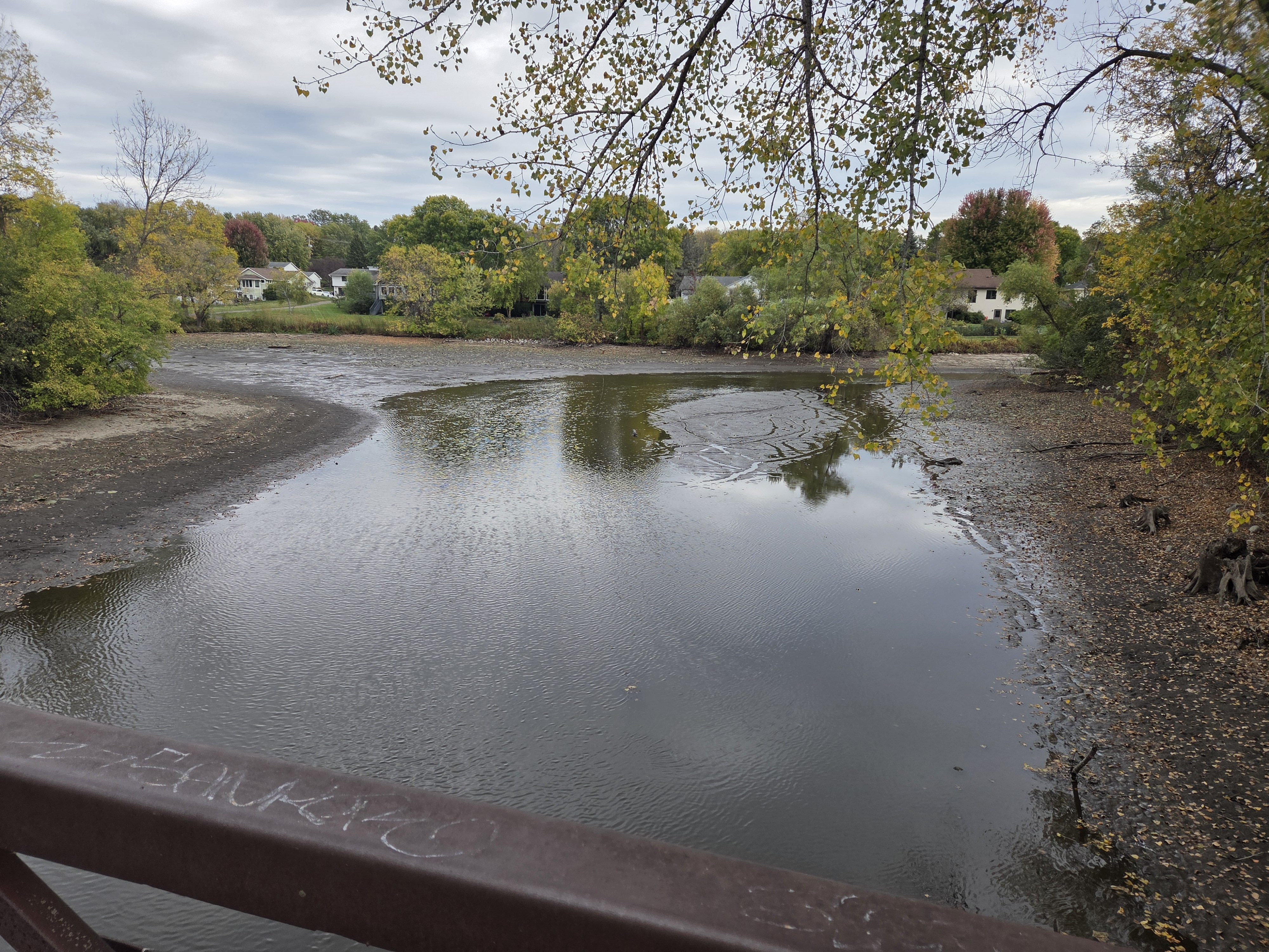 Debris blocking flow from the west side of the lake under I-94 bridge (click here)