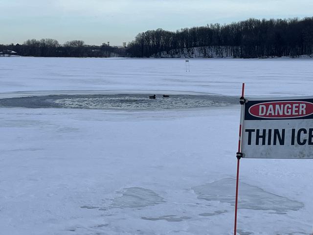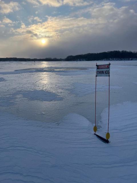 December 16, 2025 - Winter Aeration Thin Ice signs posted around perimeter